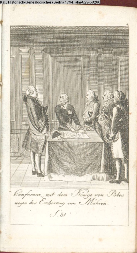Illustration zu »Fortsetzung der Geschichte der Mark Brandenburg. Friedrich II. Erste Abtheilung. 1740 bis 1756« INr 58301, Obj 24