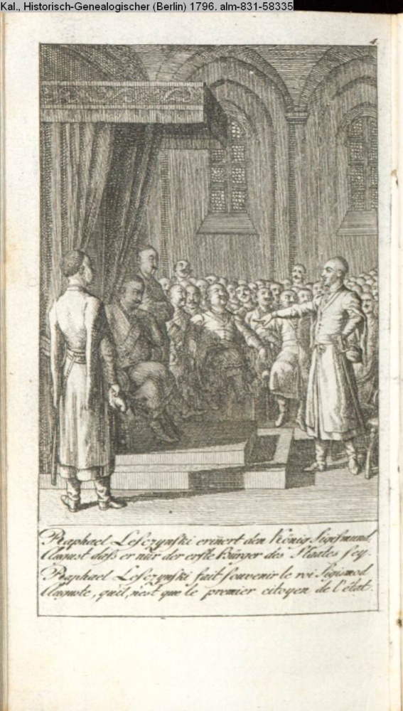 Raphael Lesczynski erinnert den König Sigismund / August dass er nur der erste Bürger des Staates sey. / Raphael Lesczynski fait souvenir le roi Sigismund / Auguste, qu'il n'est que le premier citoyen d'l'état