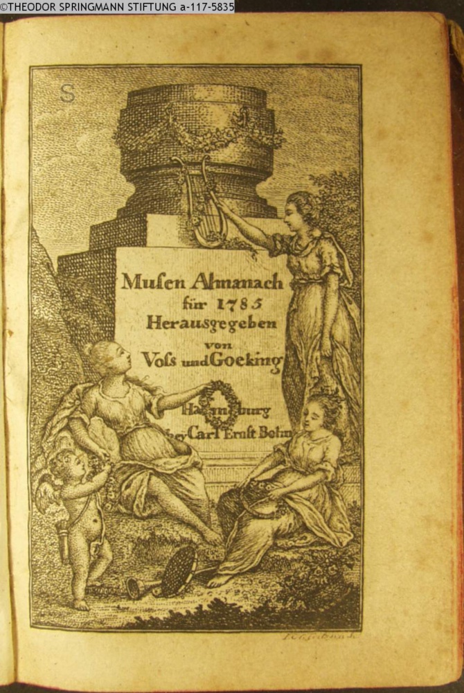 Musen Almanach / für 1785 / Herausgegeben / von / Voss und Goeking / Hamburg / bey Carl Ernst Bohn