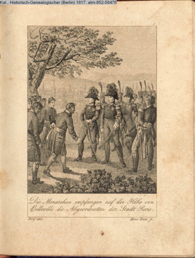 Graphik im Kalendarium August; paginiert 8. Illustration zu »Uebersicht der Kriegsjahre 1813. 1814.1815.« von E. H. A. v. Pfuel