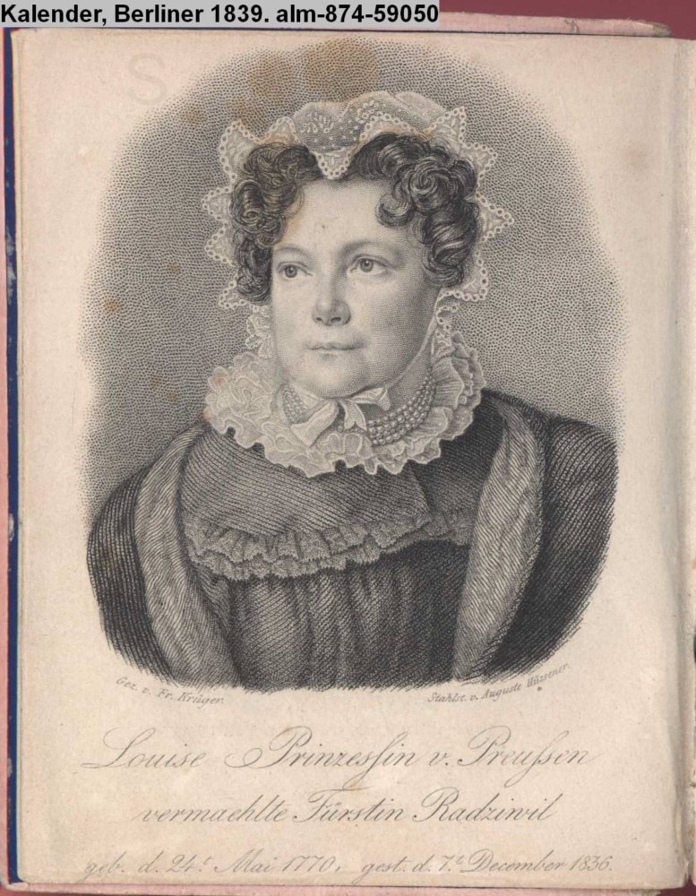 Louise Prinzessin von Preussen / vermählte Fürstin Radziwil / geb. d. 24t. Mai 1770, gest. d. 7t. December 1836