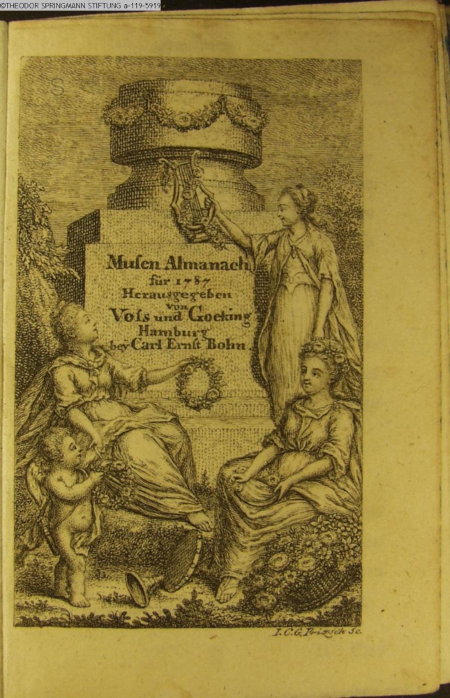 Musen Almanach / für 1787 / Herausgegeben / von / Voss und Goeking / Hamburg / bey Carl Ernst Bohn