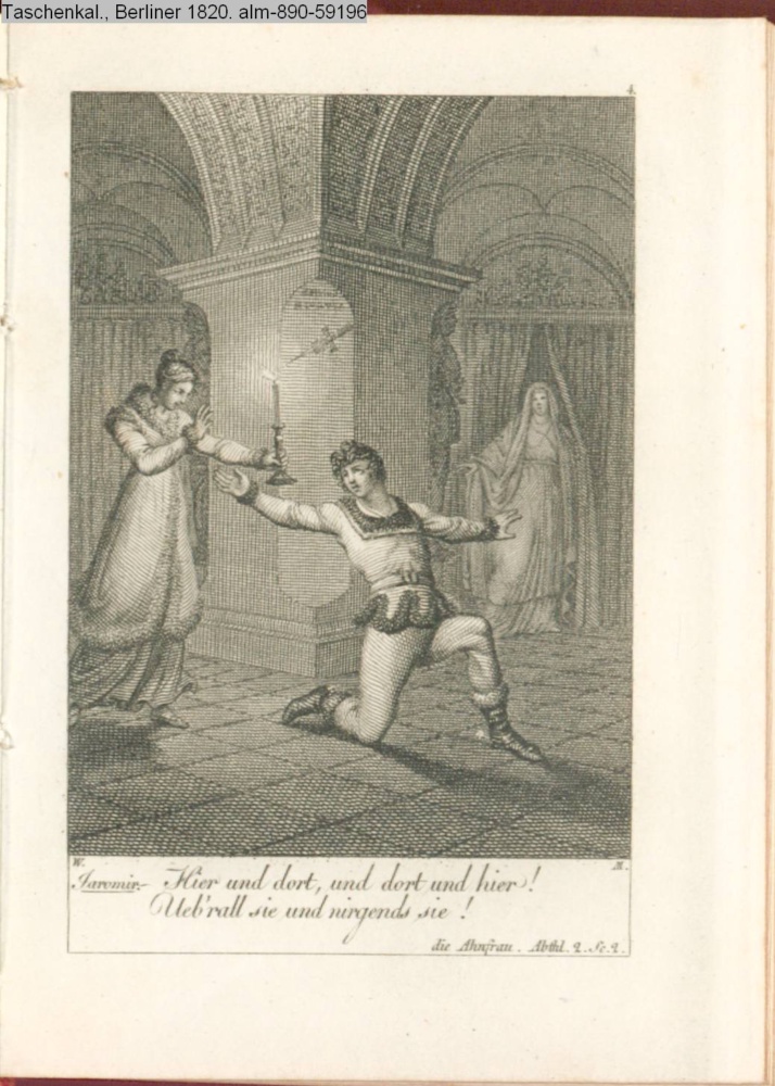 Graphik im Kalendarium April; paginiert 4. Illustration zu »Die Ahnfrau« von Fr. Grillparzer; Wien 1817