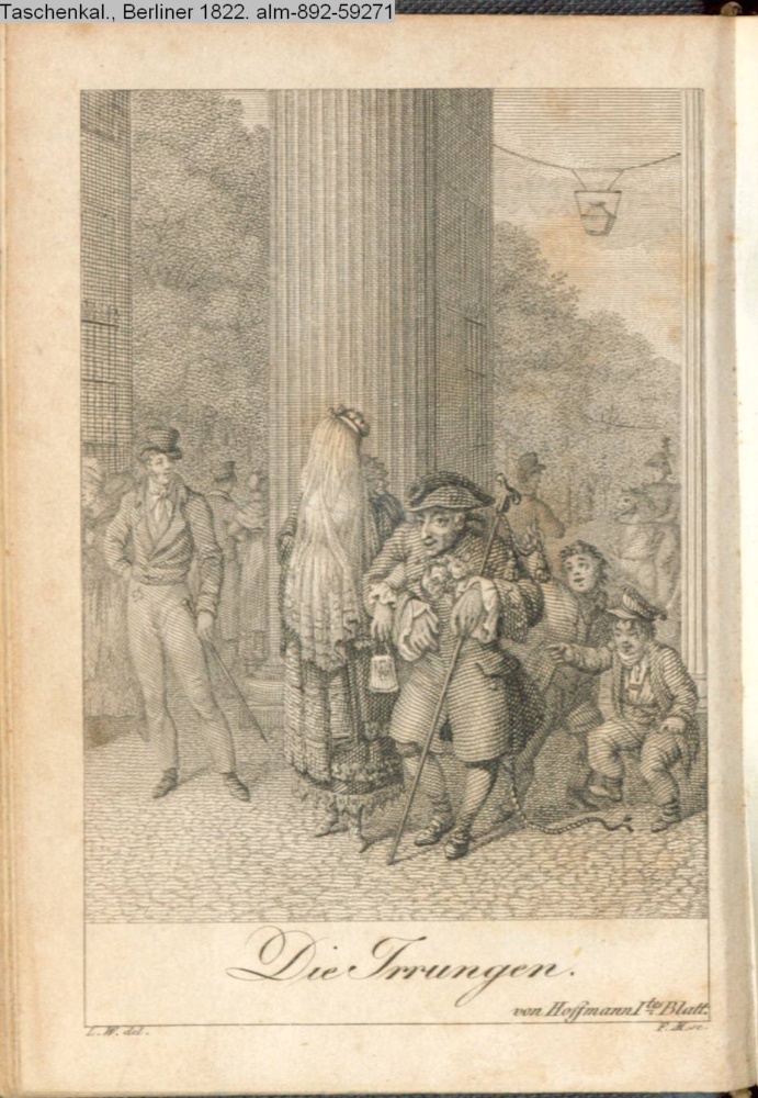 Graphik im Kalendarium Mai. Illustration zu »Die Irrungen. Fragment aus dem Leben eines Fantasten« von E. T. A. Hoffmann in: Taschenkalender, Berlinischer 1821;