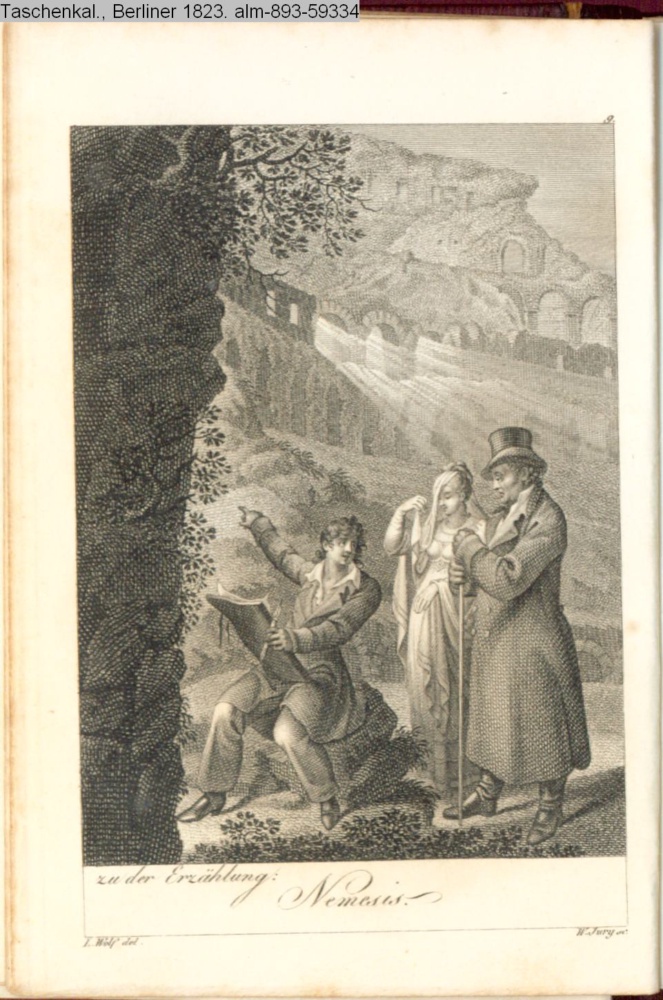 Graphik im Kalendarium September; paginiert 9. Illustration zu »Nemesis oder der Traum« von Sophie May d.i. Sophie Friederike Elise Meyer