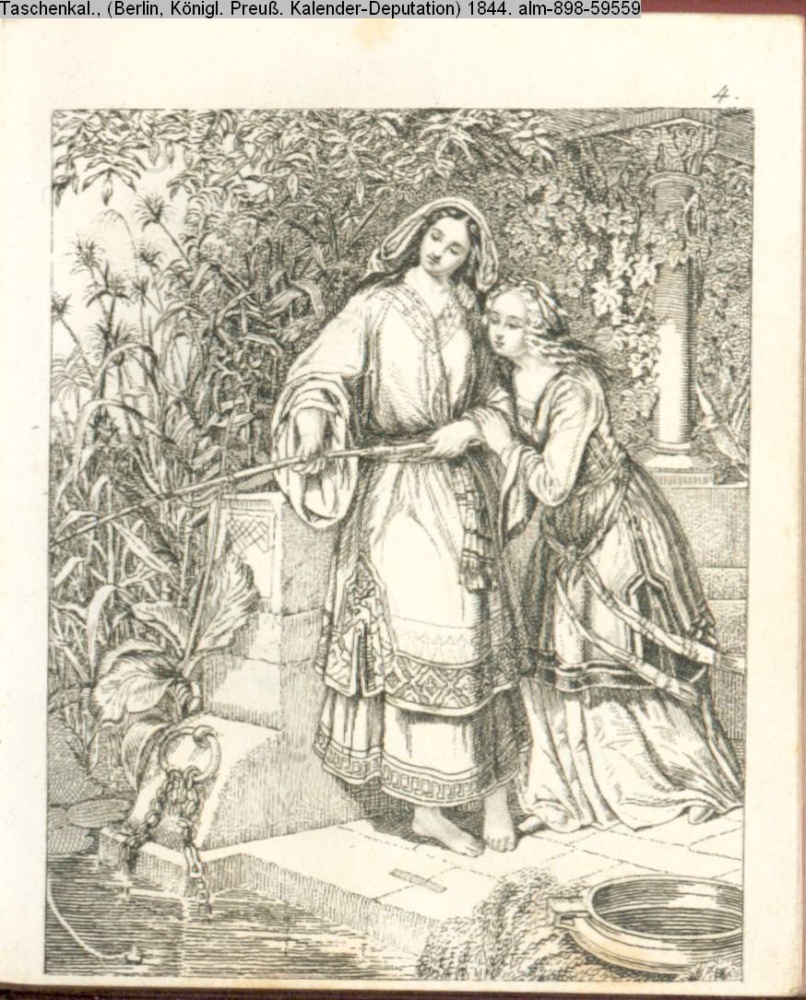 Illustration zu »Angelnde Mädchen« von E. Ferrand d.i. Ed. Schulz INr 59558, Obj 76 # Titel vom Textbezug
