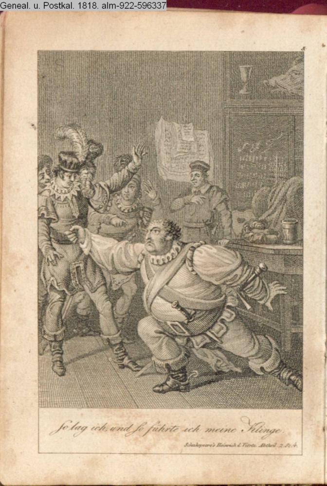 So lag ich, und so führte ich meine Klinge. / Schakspeare's Heinrich d. Vierte. Abtheil. 2. Sc. 4.