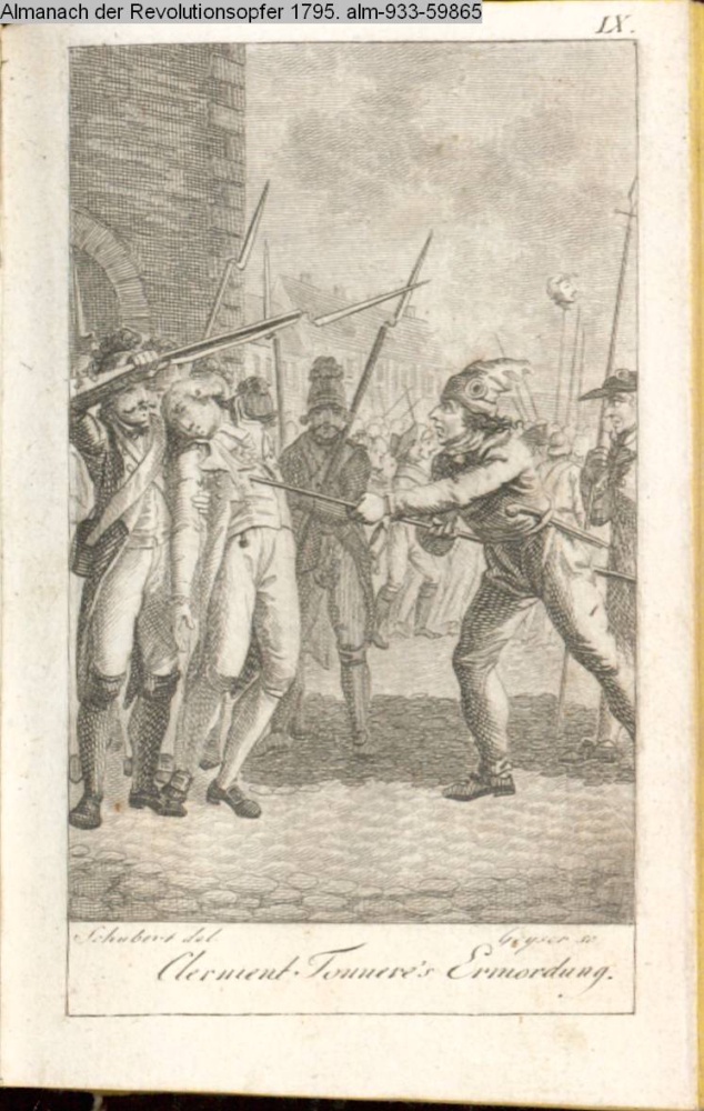 Illustration zu »Mandat Generalcommandant der pariser Nationalgarde und Clermont Tonnere Exdeputirter der konstituirenden National-Versammlung, Opfer der pariser Revoluzion am 10. August 1792« INr 59881, Obj 47 s.a. Textbezug INr 59864, Obj 30 u. Textbezug INr 59842, Obj 8
