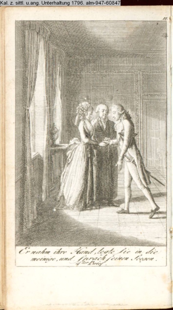 Graphik im Kalendarium Juli paginiert 11. Illustration zu »Fragment einer Heirathsgeschichte, zu Nutz und Frommen junger Heirathskandidatinnen aufgesetzt« INr 60858, Obj 21