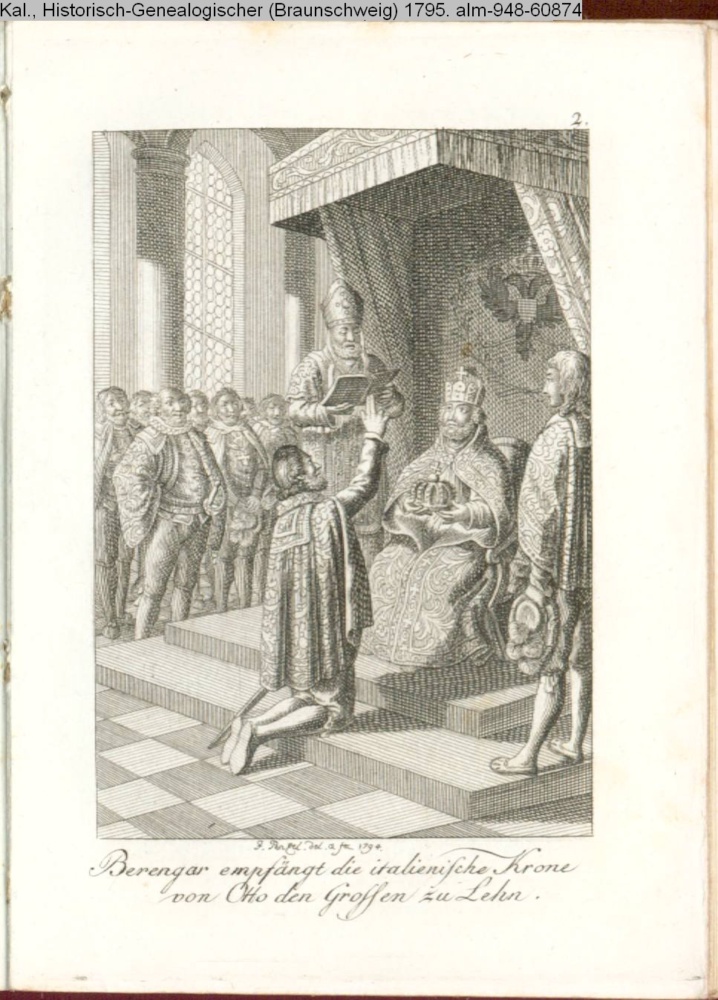 Berengar empfängt die italienische Krone / von Otto dem Grossen zu Lehn