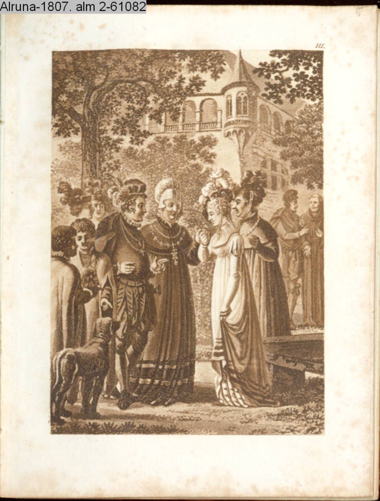 paginiert IIII. Illustration zu »Die Rückkehr zur Spindel. Sittengemälde des XV. Jahrhunderts« von J. E. F. W. Müller INr 50131, Obj 20; # Bez. vom Titel