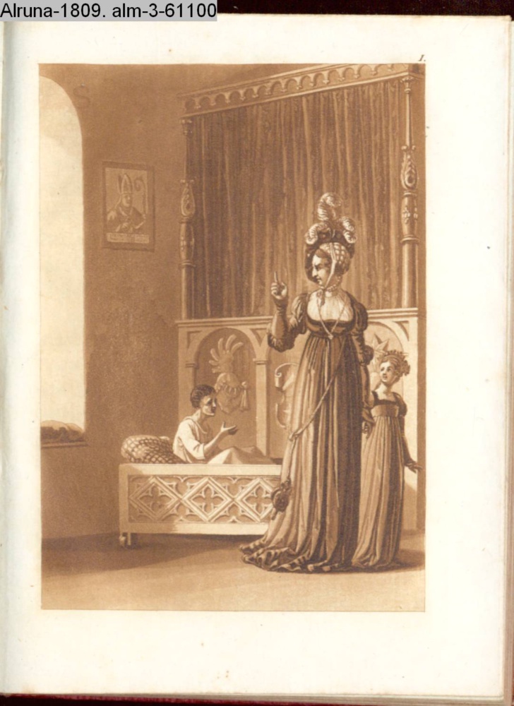 paginiert I. Illustration zu »Die güldene Halskette. Seitengemälde zur Rückkehr zur Spindel. Nach vorgezeichneten Kupfern. Jutta von Rosenheim« INr 50165, Obj 21