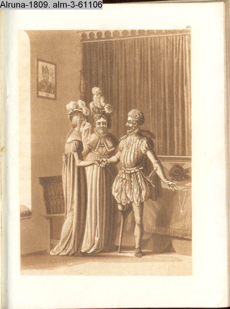 paginiert III. Illustration zu »Die güldene Halskette. Seitengemälde zur Rückkehr zur Spindel. Nach vorgezeichneten Kupfern. Jutta von Rosenheim« INr 50165, Obj 21