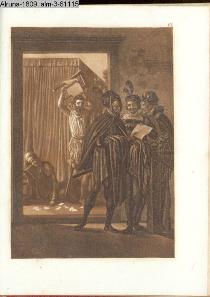 paginiert VI. Illustration zu »Die güldene Halskette. Seitengemälde zur Rückkehr zur Spindel. Nach vorgezeichneten Kupfern. Jutta von Rosenheim« INr 50165, Obj 21