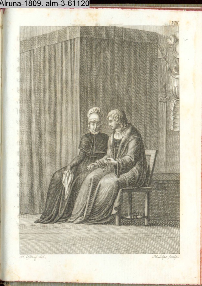 paginiert VIII. Illustration zu »Die güldene Halskette. Seitengemälde zur Rückkehr zur Spindel. Nach vorgezeichneten Kupfern. Jutta von Rosenheim« INr 50165, Obj 21