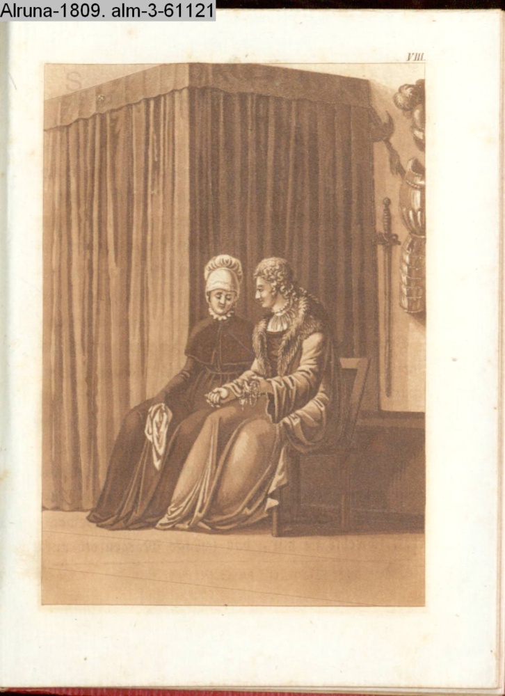 paginiert VIII. Illustration zu »Die güldene Halskette. Seitengemälde zur Rückkehr zur Spindel. Nach vorgezeichneten Kupfern. Jutta von Rosenheim« INr 50165, Obj 21