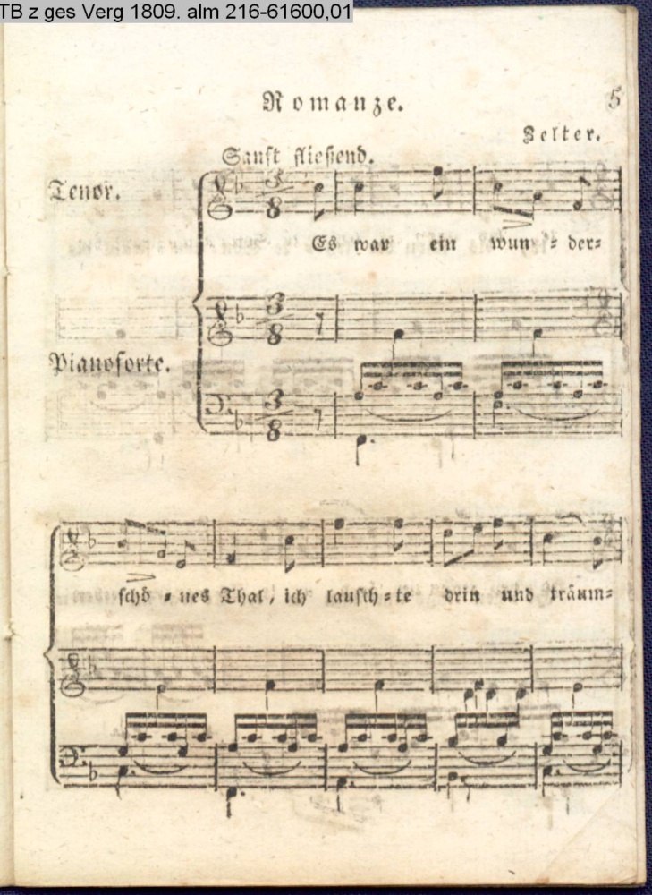 Anhang zu Beckers Taschenbuch 1809. enthaltend: Compositionen und Tänze, von Harder, Reichardt, Himmel und Bergt (Anhang INr 61598, Obj 163) (Photos 61600,01; 61600,02)