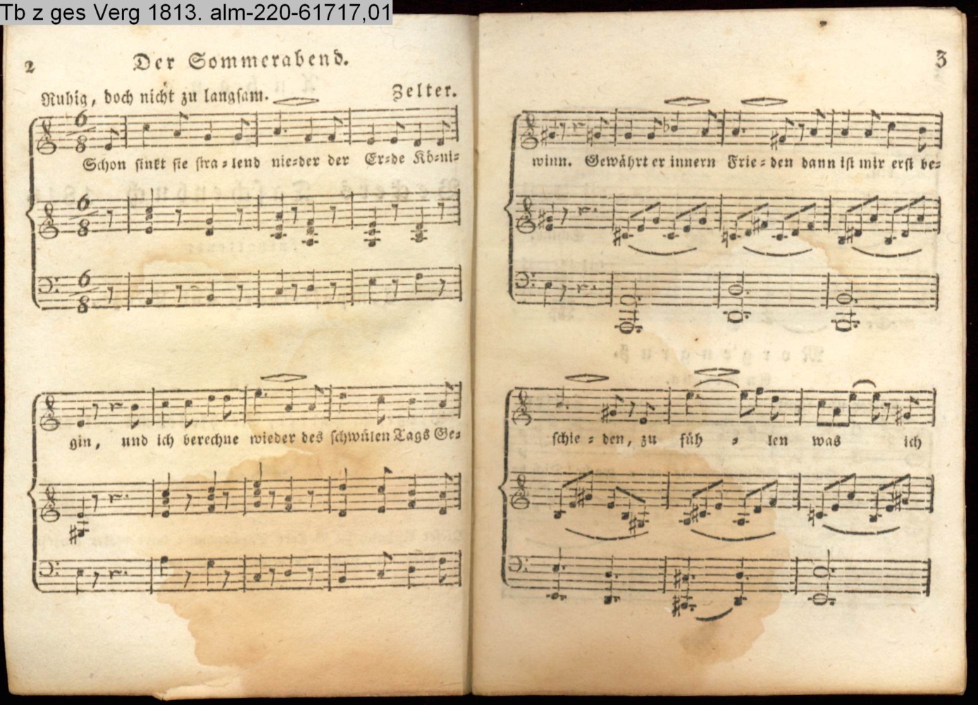 Vertonung des Gedichts »Der Sommerabend« von W. G. Becker INr 13921, Obj 34 (Photos 61717,01; 61717,02)