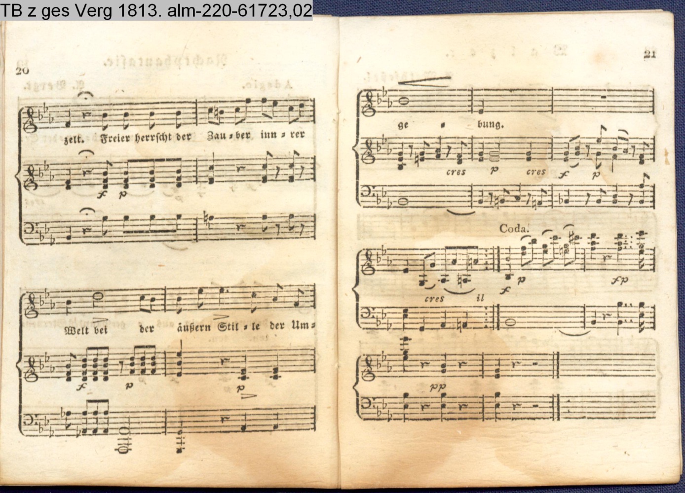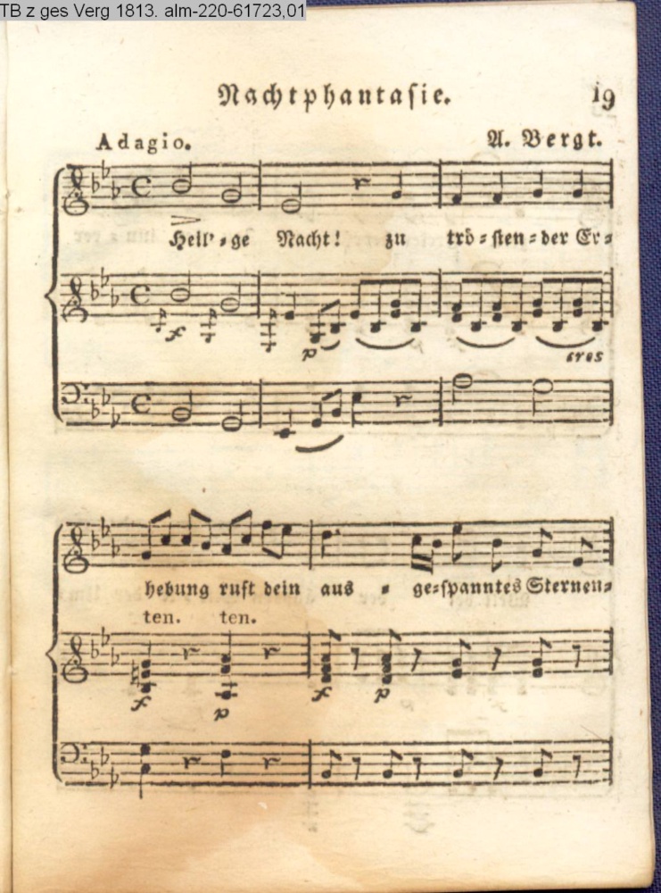 Anhang zu Beckers Taschenbuch 1813 enthaltend: Compositionen und Tänze, von Bergt, A. Harder, Methfeßel und Zelter (Sammlung INr 61716, Obj 168)