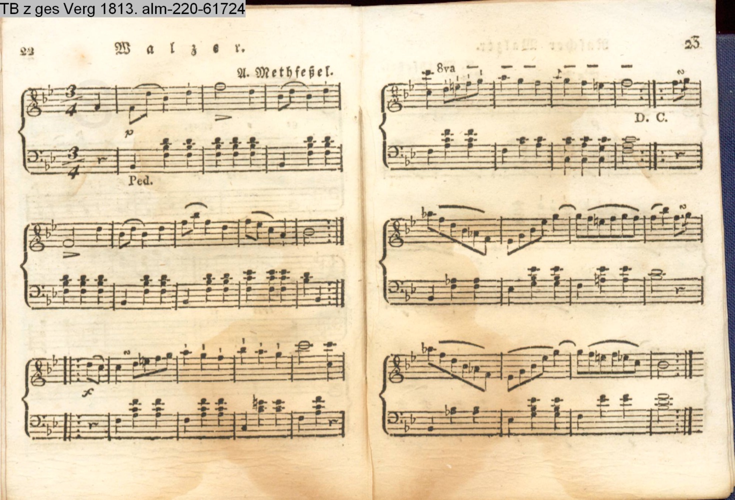 Anhang zu Beckers Taschenbuch 1813 enthaltend: Compositionen und Tänze, von Bergt, A. Harder, Methfeßel und Zelter (Sammlung