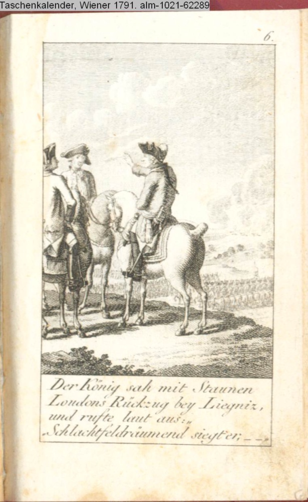 Der König sah mit Staunen / Loudons Rückzug bey Liegniz, / und rufte laut aus: / »Schlachtfeldräumend siegt er«