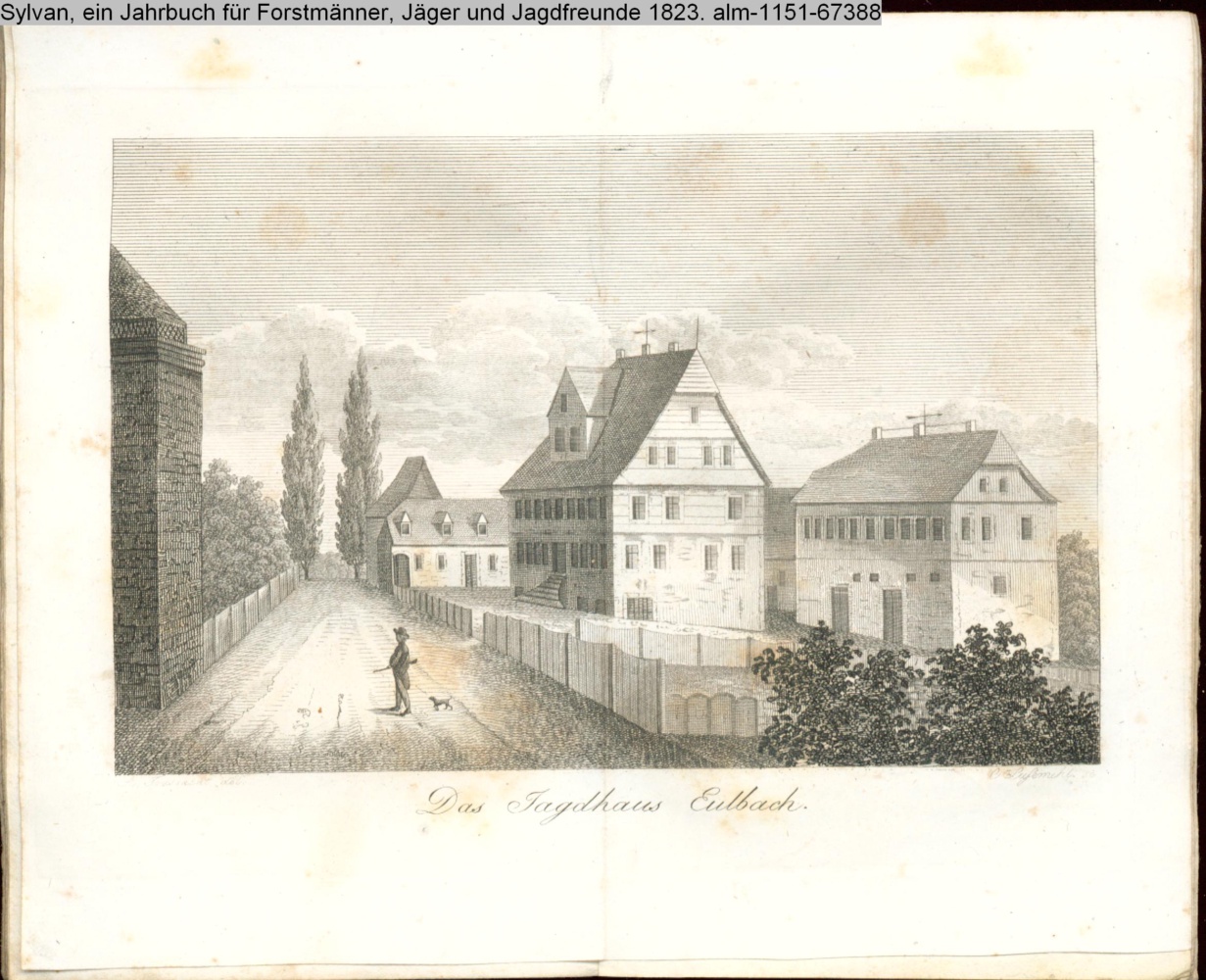 Illustration zu »Eulbach, ein Jagdhaus und Sommer-Aufenthalt des Herrn Grafen Franz von Erbach« von C. P. Laurop und V. F. S. Fischer