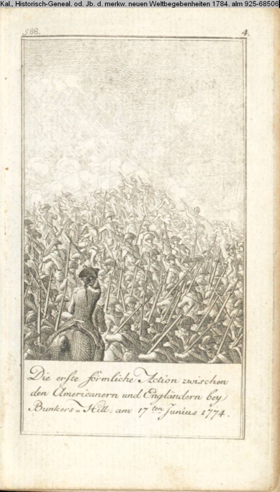 Graphik im Kalendarium April paginiert 4. Illustration zu »Geschichte der nordamericanischen Independenz« INr 68522, Obj 23 s.a. Textbezug INr 68532, Obj 33