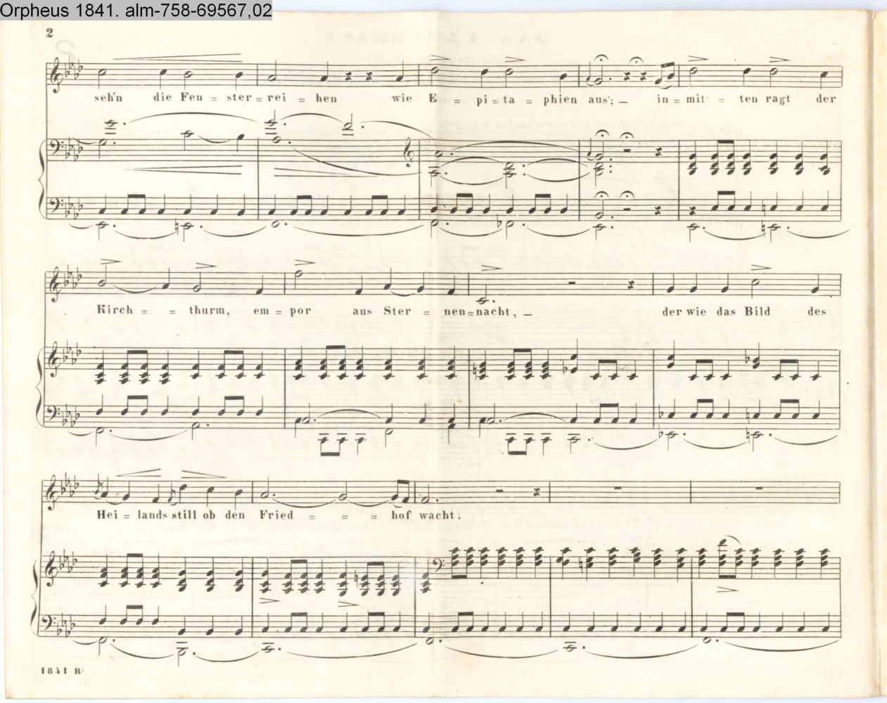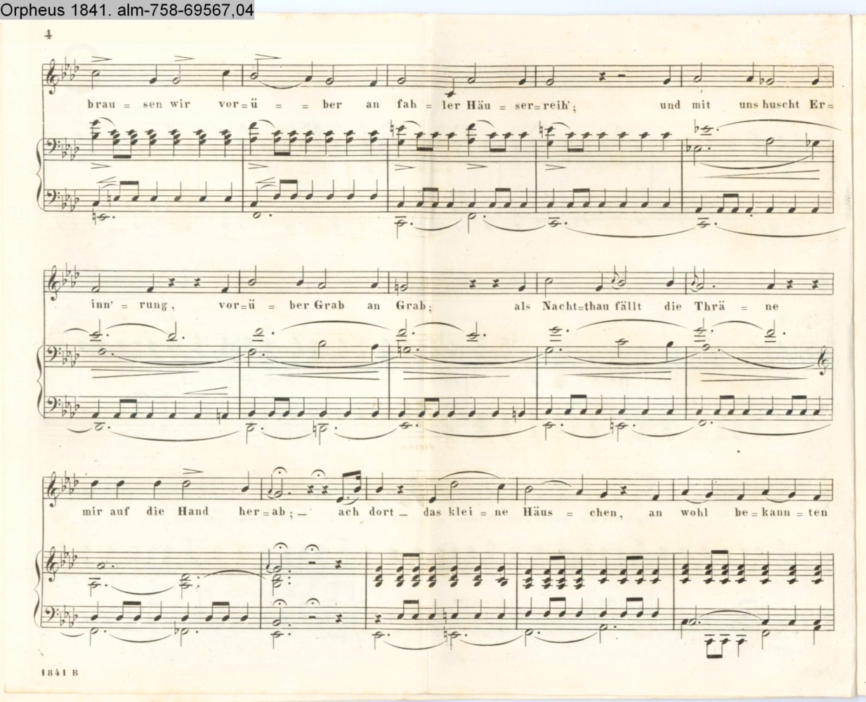 sep. Beilage: paginiert 1-4; Vertonung des Gedichts »Das Vaterhaus« von Dr. Frank d.i. Gustav von Frank