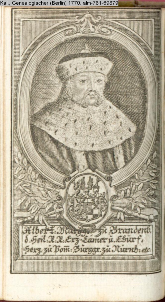 3. Blatt der Suite »Die Durchlauchtigsten Marggrafen zu Brandenburg aus dem Hohenzollerischen Hause Von Friderich I. bis auf Sr. jetztregierenden Maj. König Friderichs. In 14 Kupfern vorgestellet von J. G. Wolfgang Königl. Hof-Kupferstecher in Berlin« INr 69876, Obj 22; s. Anm. dort