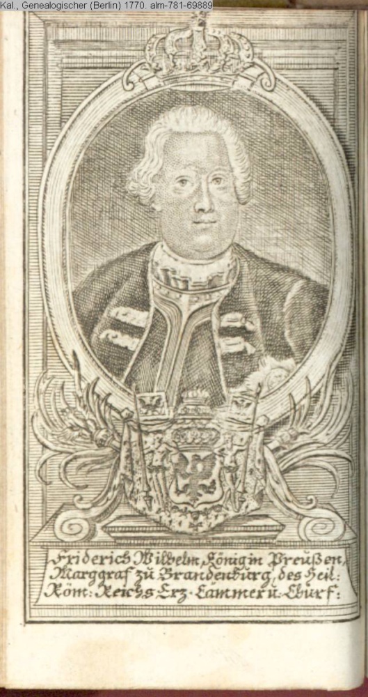 13. Blatt der Suite »Die Durchlauchtigsten Marggrafen zu Brandenburg aus dem Hohenzollerischen Hause Von Friderich I. bis auf Sr. jetztregierenden Maj. König Friderichs. In 14 Kupfern vorgestellet von J. G. Wolfgang Königl. Hof-Kupferstecher in Berlin« INr 69876, Obj 22; s. Anm. dort