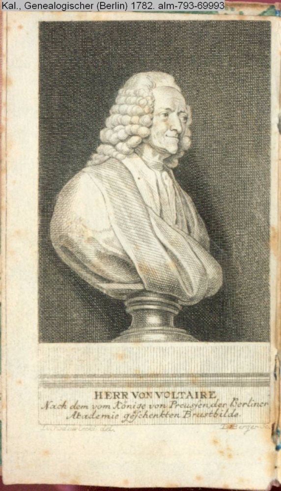 HERR VON VOLTAIRE / Nach dem vom Könige von Preussen der Berliner / Academie geschenkten Brustbilde