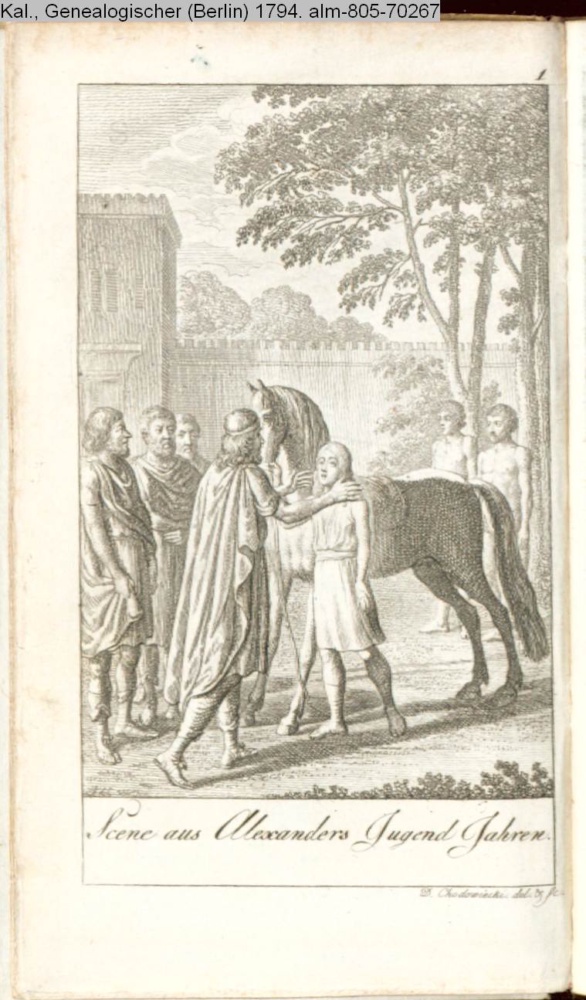 Illustration zu einer Andekdote aus: Die interessantesten Züge und Anekdoten aus der Geschichte alter und neuer Zeiten: ein Lesebuch für die Jugend zum Vergnügen und Unterricht nach dem Franz. des Herrn Fillassier ... mit Anm. und Zusätzen des Hrsg. [F. L. Brunn]. - Berlin: Königl. Preuß. Akadem. Kunst- und Buchh. Th. 1. - 1788