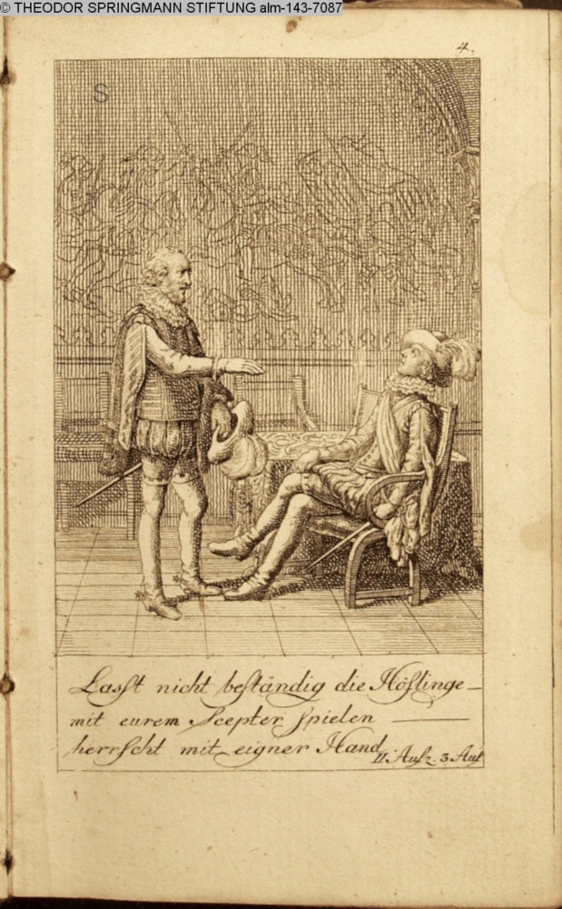 Laßt nicht beständig die Höflinge / mit eurem Scepter spielen / herrscht mit eigener Hand. / II. Aufz. 3. Auft.