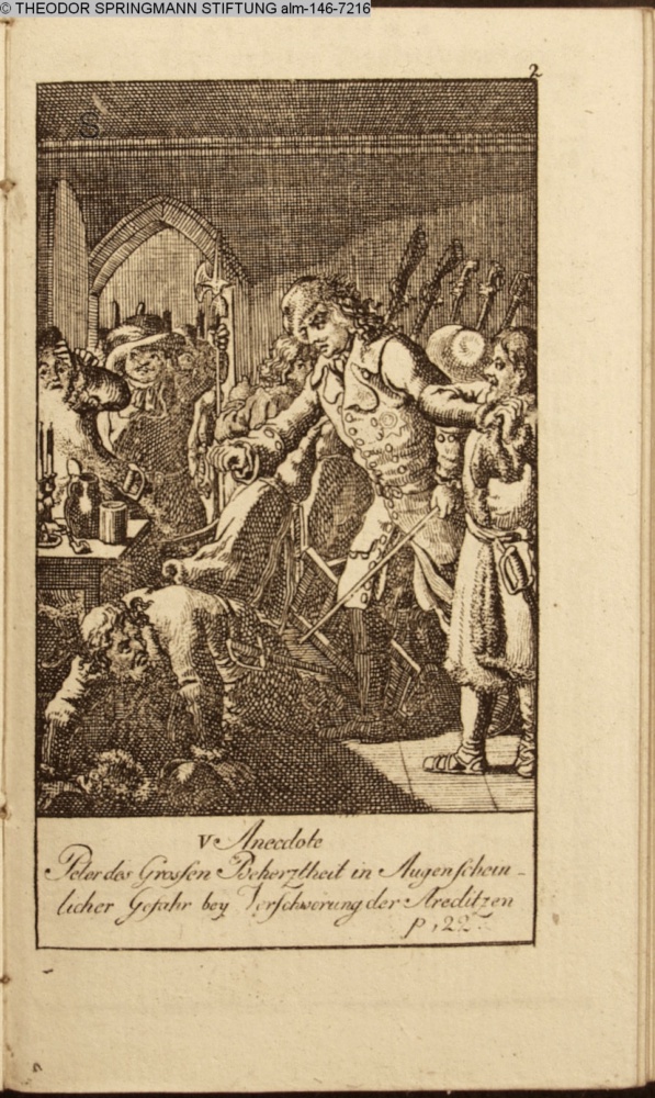 V. Anecdote / Peter des Großen Beherztheit in Augenschein- / licher Gefahr bey Verschwörung der Areditzen / p. 22