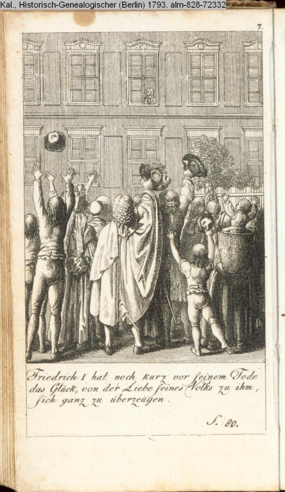 Illustration zu »Fortsetzung der Geschichte der Mark Brandenburg und der damit verbundenen Staaten vom Jahre 1688 bis zum Jahr 1740. Churfürst Friedrich III. erster König von Preussen« INr 72344, Obj 23