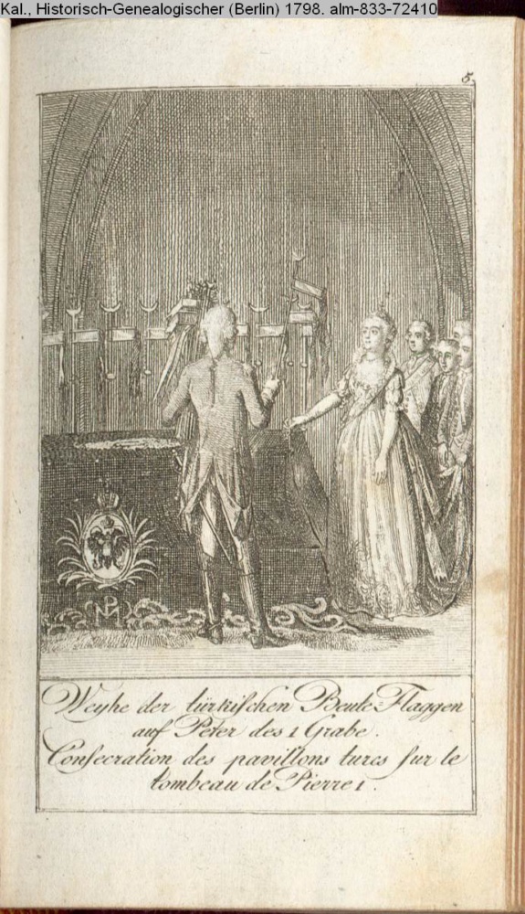 Weyhe der türkischen Beute-Flaggen / auf Peter des 1 Grabe. / Consecration des pavillons turcs sur le / tombeau de Pierre 1