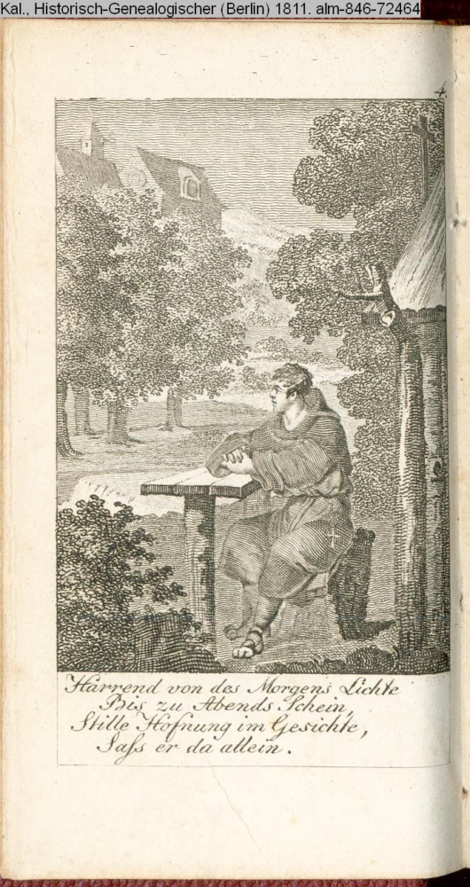 Harrend von des Morgens Lichte / Bis zu Abends Schein, / Stille Hoffnung im Gesichte, / Sass er da allein