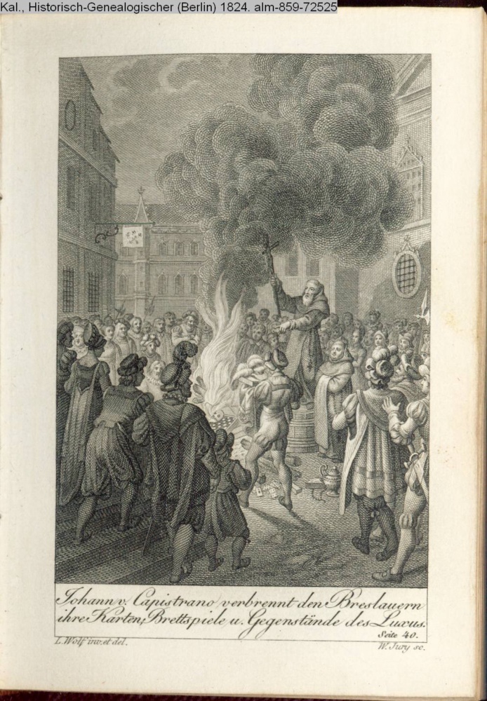 Johann v. Capistrano verbrennt den Breslauern / ihre Karten, Brettspiel u. Gegenstände des Luxus. / S. 40