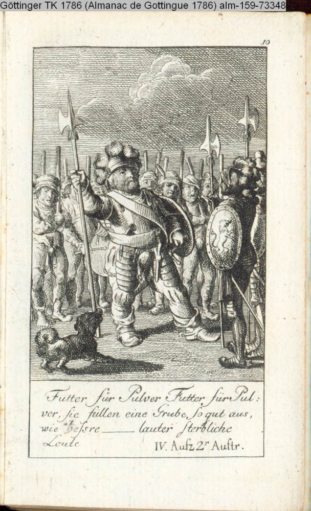 Futter für Pulver, Futter für Pul- / ver, sie füllen eine Grube so gut aus /, / wie bessre - lauter sterbliche / Leute. / IV. Aufz. 2r. Auftr.
