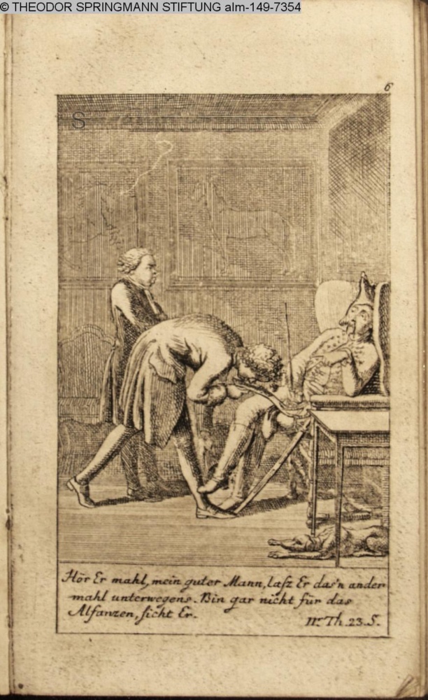 Hör er mahl, mein guter Mann, laß Er das 'n ander mahl unterwegens. Bin gar nicht für das Alfanzen, sieht Er / II. Th. 23. S.