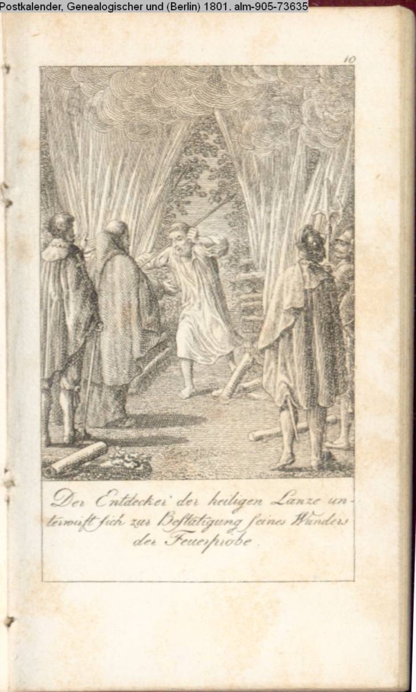 Der Entdecker der heiligen Lanze un- / terwirft sich zur Bestätigung seines Wunders / der Feuerprobe