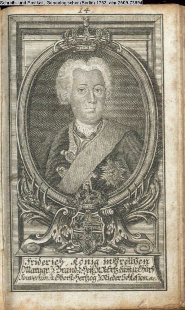 Die durchlauchtigsten Marggrafen Zu Brandenburg aus dem Hohenzollerischen Hause Von Friedrich I. bis auf Sr. jetztregierenden Maj. König Friderichs. In 14 Kupfern vorgestellet von J. G. Wolfgang Königl. Hof-Kupferstecher in Berlin (Sammlung INr 73880, Obj 27)