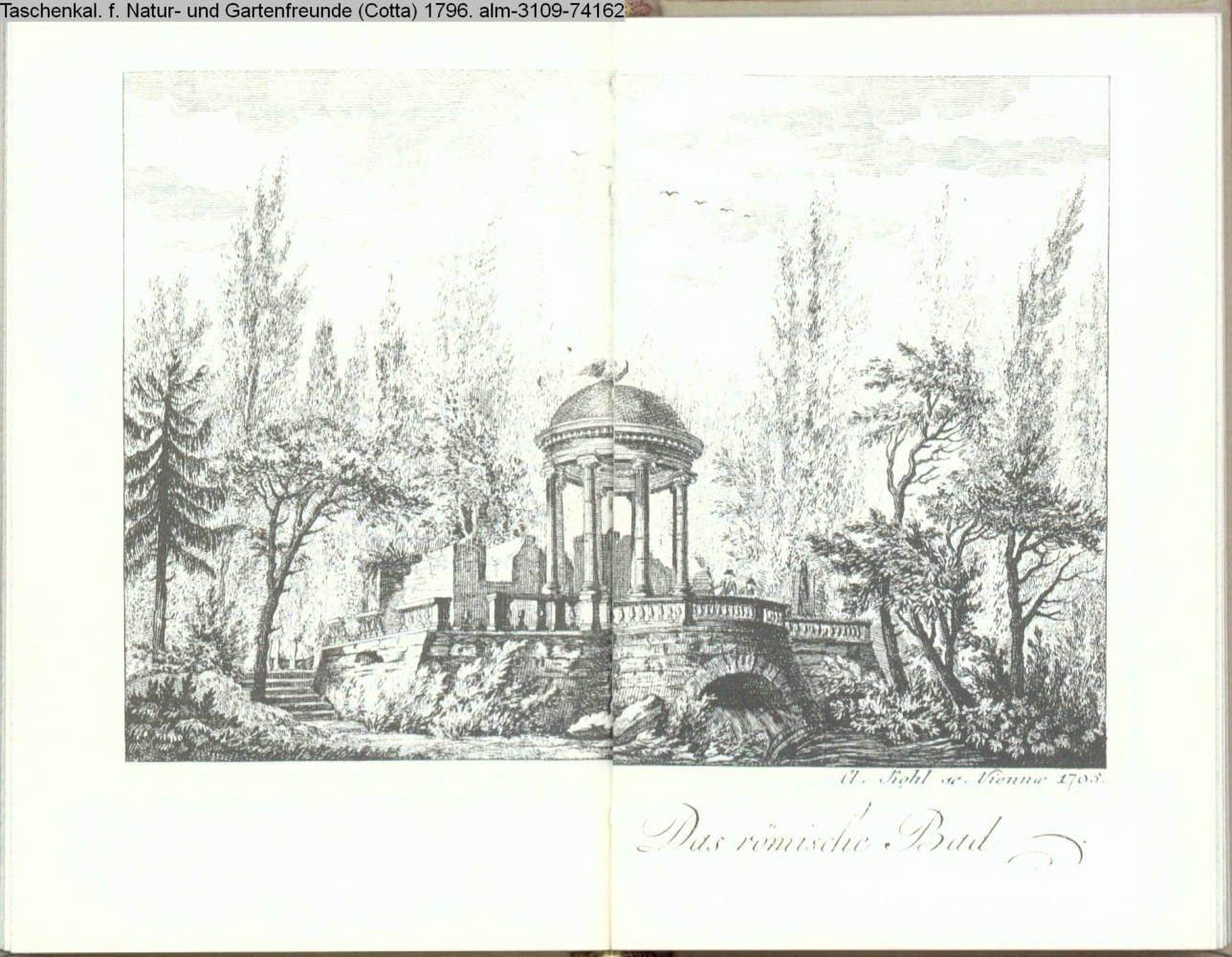 Illustration zu »Beschreibung des Gartens in Hohenheim. Fortsetzung. / Das römische Bad« von G. H. Rapp