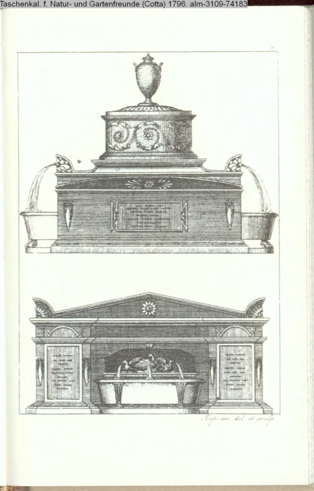 Illustration zu »Vorschläge zu schönen BrunnenVerzierungen. Von Herrn Hofbildhauer Isopi« von G. H. Rapp INr 74180, Obj 31