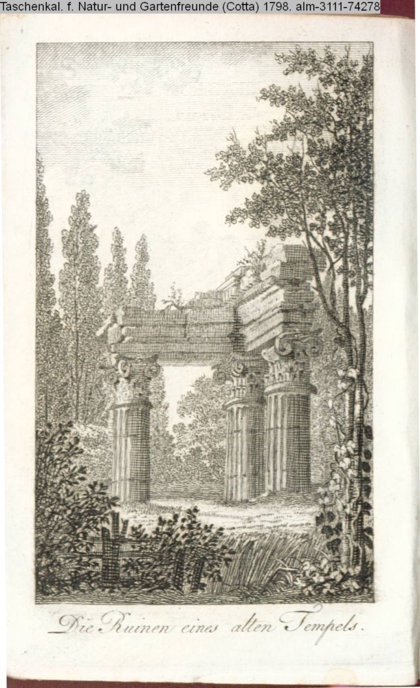 Illustration zu »Beschreibung des Gartens in Hohenheim. Dritte Fortsetzung / Die Ueberreste eines Tempels in der Nähe des großen Schweitzerhauses« von G. H. Rapp INr 74294, Obj 18