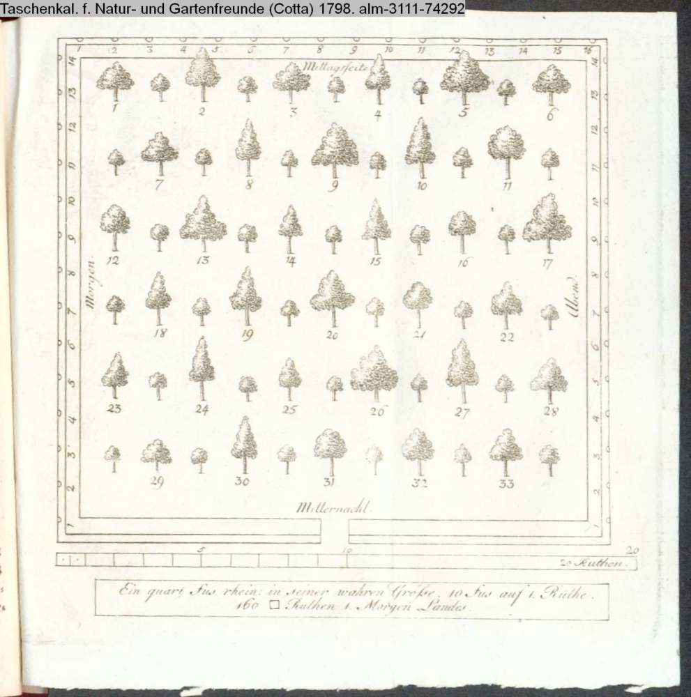 Illustration zu »Ideal einer Obstgartenanlage von zwey Morgen Größe, nach verschiedener Rüksicht der Lage und der Absicht des Besizzers«