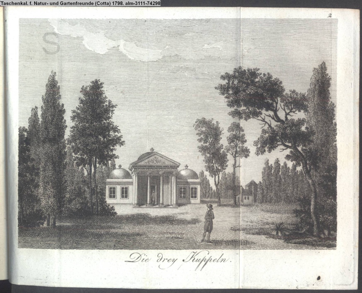 Illustration zu »Beschreibung des Gartens in Hohenheim. Dritte Fortsetzung. / Die drey Kuppeln oder der Merkur-Tempel« von G. H. Rapp INr 74297, Obj 21