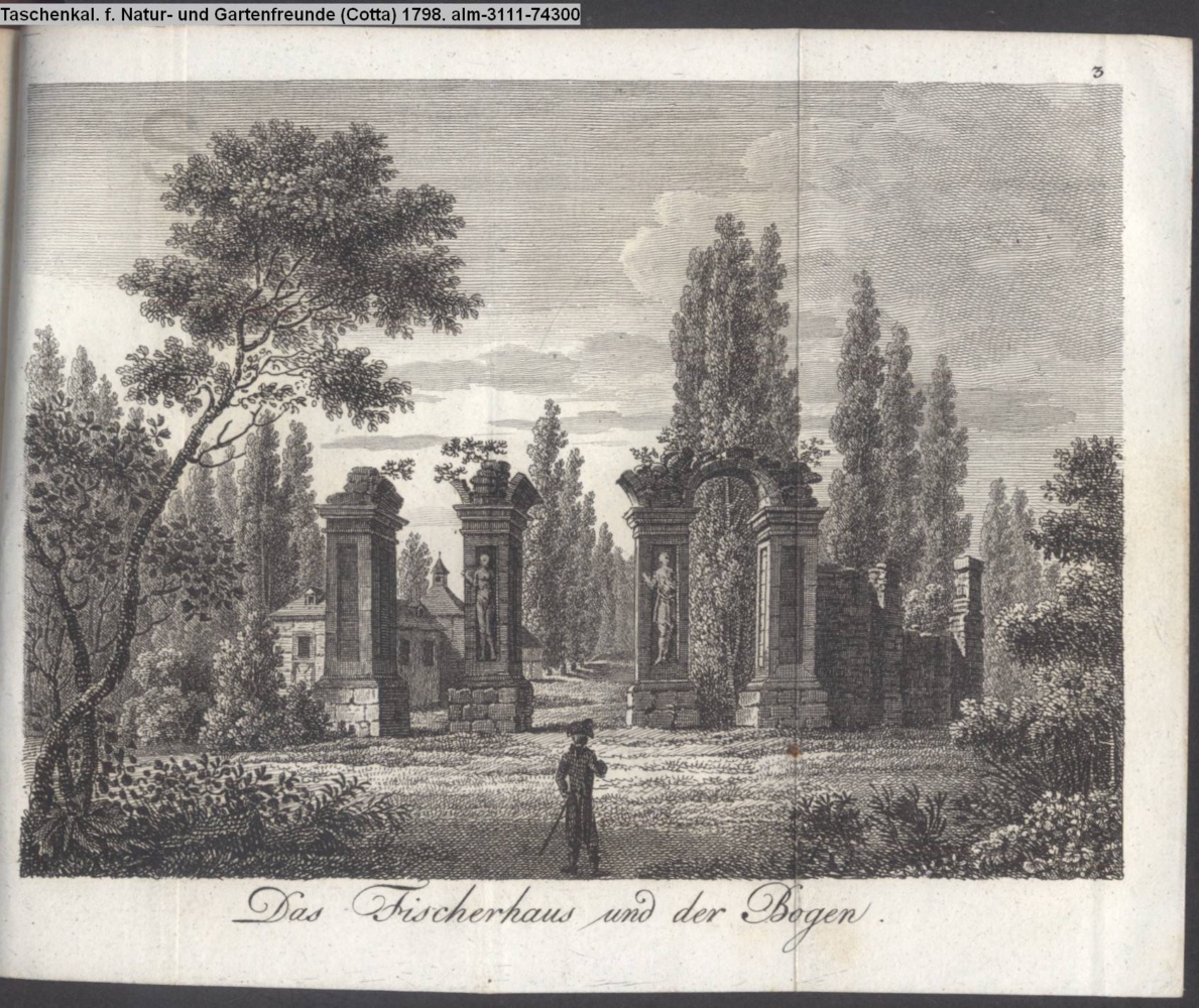 Illustration zu »Beschreibung des Gartens in Hohenheim. Dritte Fortsetzung. / Das Fischerhaus, und der Bogen« von G. H. Rapp INr 74299, Obj 23