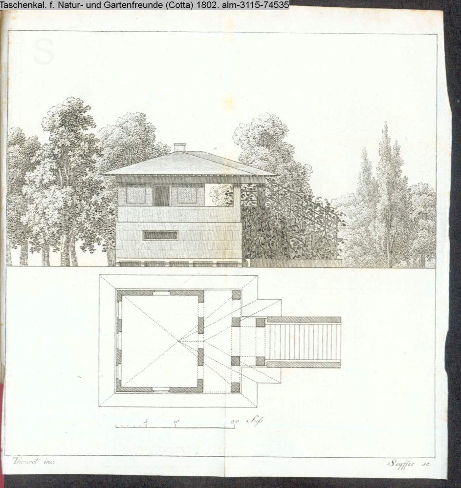 Illustration zu »Vorschläge zu GartenGebäuden von Herrn Hofarchitect Thouret. 2. 3.) Gartenhäuser im Geschmak der italienischen Vignen-Gebäude«