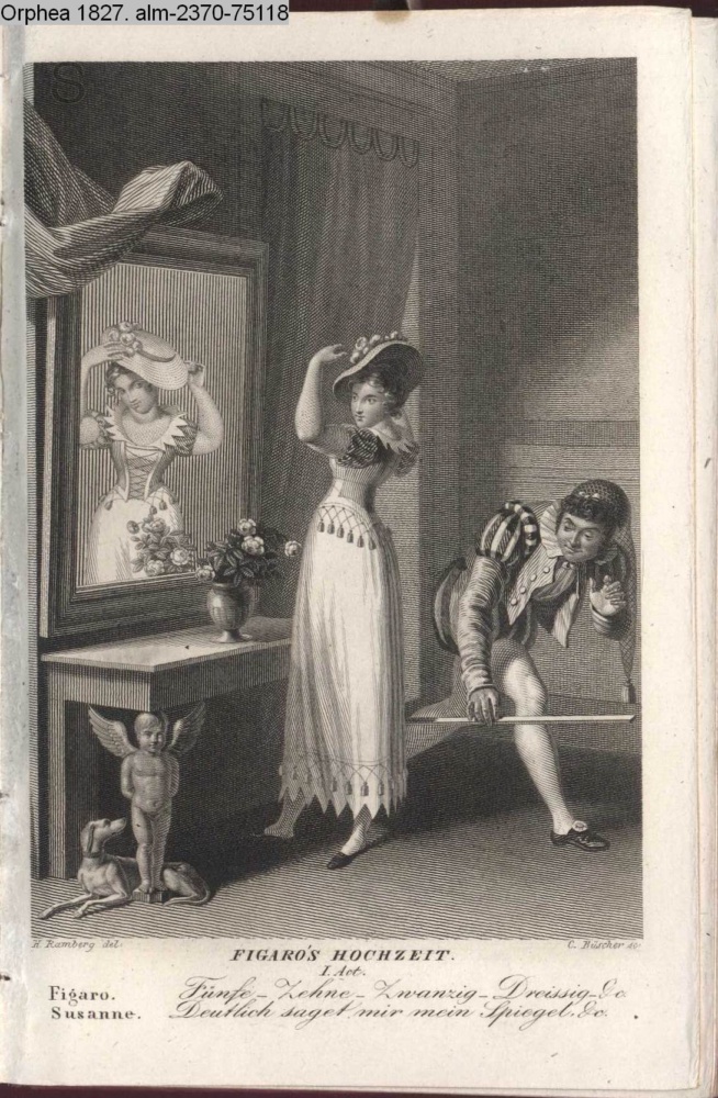 Gallerie zu den Opern. Vierte Lieferung. Figaro's Hochzeit Illustration zu »Figaro's Hochzeit« von W. A. Mozart / L. da Ponte; s.a. Textbezug